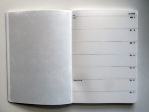 Kalender 2024, Doppelseite Monotypie Beinfrisur